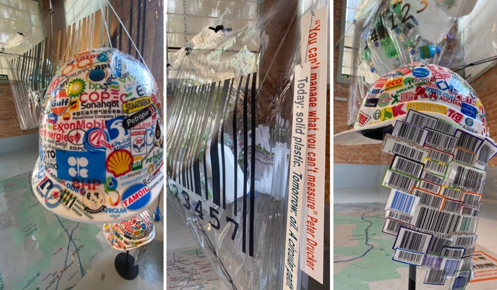 Los residuos plásticos son un problema ubicuo y planetario. En su obra, Clara Salina propone un paradigma alternativo ante el fracaso de los acuerdos medioambientales globales sobre la materia. Clara resume más de 10 años de reflexiones, estudios y trabajos sobre el argumento traduciéndolos a la sensibilidad del arte. Propone el rastreo de residuos plásticos mediante el uso de códigos de barras. Los plásticos son sintéticos derivados del petróleo y no biodegradables, que no desaparecerán por encanto, ni la naturaleza los podrá asimilar.