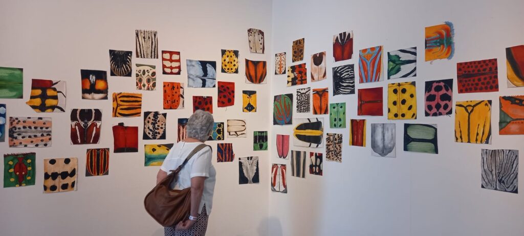 Como artista y activista, Soledad Neira exalta simbólicamente los cuerpos de seres cuyas alas y manchas han existido durante mucho más tiempo que la presencia humana en la Tierra. Los insectos son seres regenerativos que realizan tareas esenciales para el equilibrio de los ecosistemas: polinizan las plantas, reciclan los nutrientes del suelo, producen alimentos, neutralizan los desechos, etc. Los humanos formamos una red interconectada e interdependiente de estos pequeños seres. Sin embargo, ante la urbanización desenfrenada, la contaminación y otras intervenciones ambientales, las especies se están extinguiendo. La propuesta de Soledad nos invita a reflexionar, admirar y valorar la diversidad de las especies y sus singularidades. Después de todo, si constituimos una sola unidad, la fobia y el exterminio del otro (humano o no humano) culminarán en el exterminio de nosotros mismos.