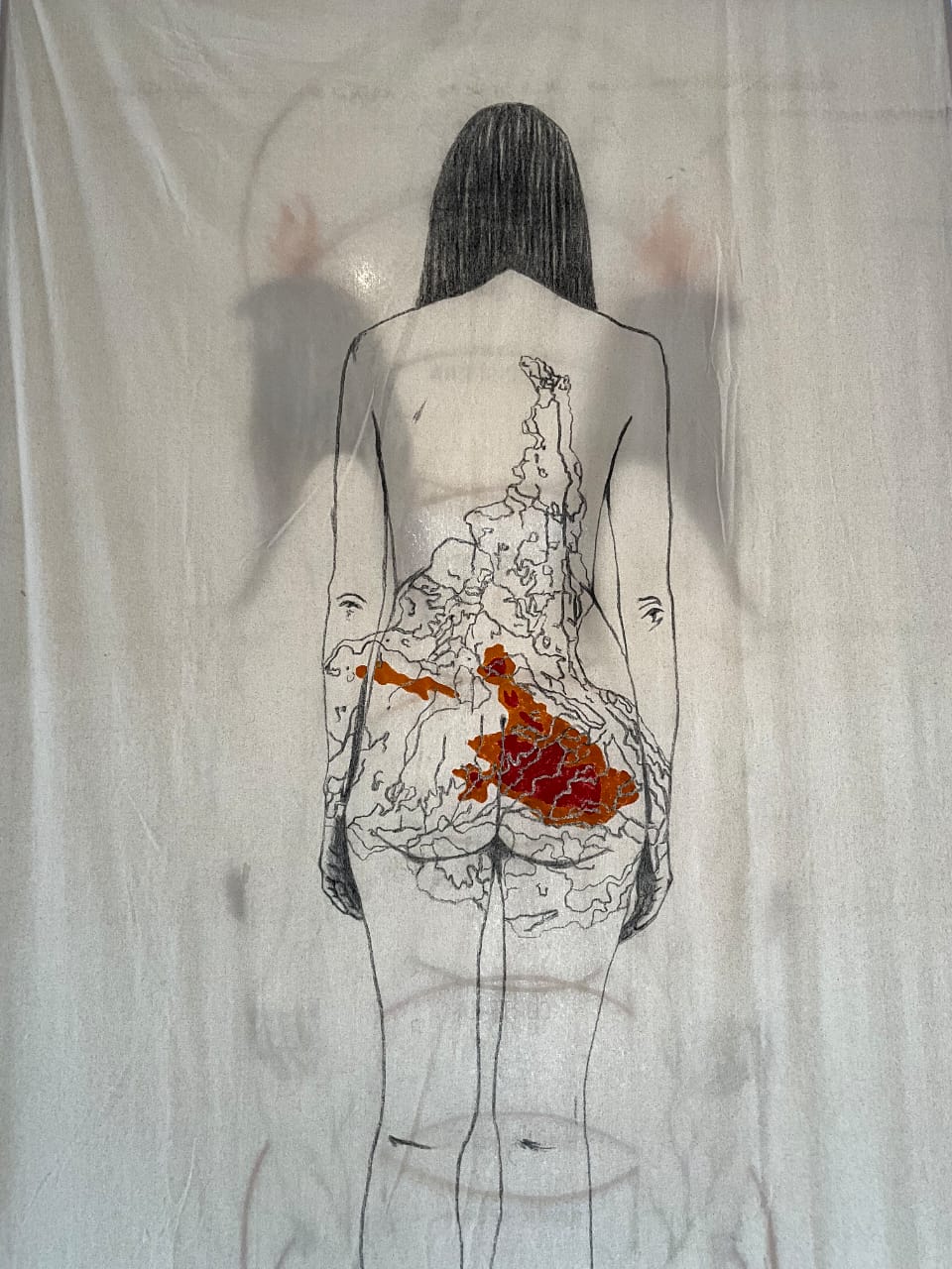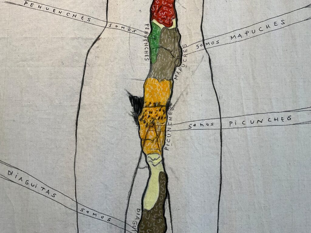 Klaudia Kemper utiliza las siluetas y formas de su propio cuerpo para reimaginar la relación con el mundo. Las venas y arterias se convierten en ríos con sus cabeceras, afluentes y desembocaduras. El cuerpo es un territorio sagrado. La artista utiliza elementos mínimos y esenciales, como el carbón y la costura sobre telas de algodón, para suspender otras narrativas de Abya Yala. Si en el pasado la colonización sistematizó la dominación de cuerpos y territorios sometidos a la explotación, Klaudia nos propone un imaginario opuesto. El buen vivir libera a los cuerpos-cosmos de las jerarquías y fronteras totalitarias, vidas que tienden a encontrar una especie de homeostasis, un equilibrio interior a pesar del caos exterior.